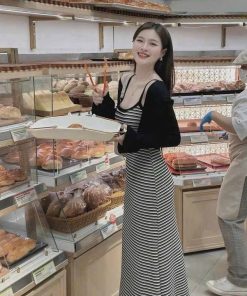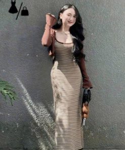 SET ĐẦM TĂM GÂN SỌC 2 DÂY KÈM ÁO KHOÁC BT84HG-NANA FREESIZE < 55KG