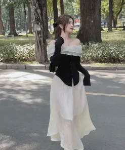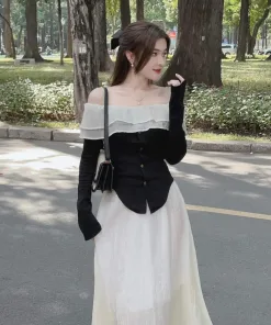 SET ĐẦM VÁY ÁO BORIP TRỄ VAI PHỐI VÁY VOAN TƠ BT103 – NANA FREESIZE <55KG