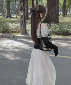 Chất liệu : ÁO THUN BORIP – VÁY TƠ XƯỚC CÓ LÓT