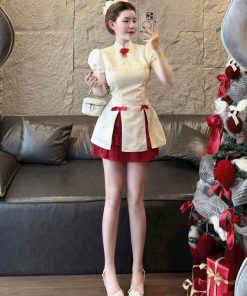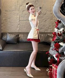 Tên sản phẩm: SÉT ĐẦM VÁY NỮ ÁO GẤM XẺ TÀ PHỐI VÁY TƠ CÓ LÓT QUẦN XINH TP40 – GOLDEN DREAM