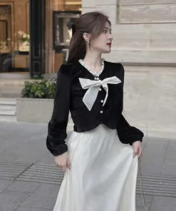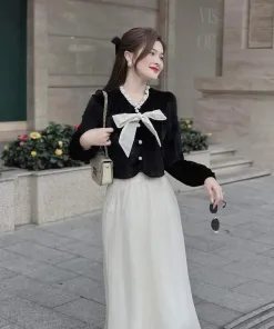 SET ĐẦM VÁY NỮ ÁO NHUNG CỨNG PHỐI VÁY VOAN TƠ 2 LỚP ST1085 – SAM FREESIZE < 53KG