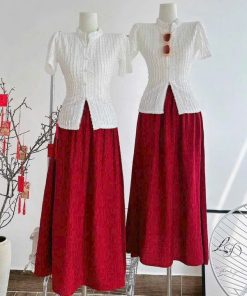 Tên sản phẩm: SÉT ĐẦM VÁY NỮ ÁO XỐP CỔ TÀU PHỐI VÁY TƠ 2 LỚP ĐI CHƠI TẾT, CHƠI NOEL ĐỀU ĐẸP TP20 – GOLDEN DREAM