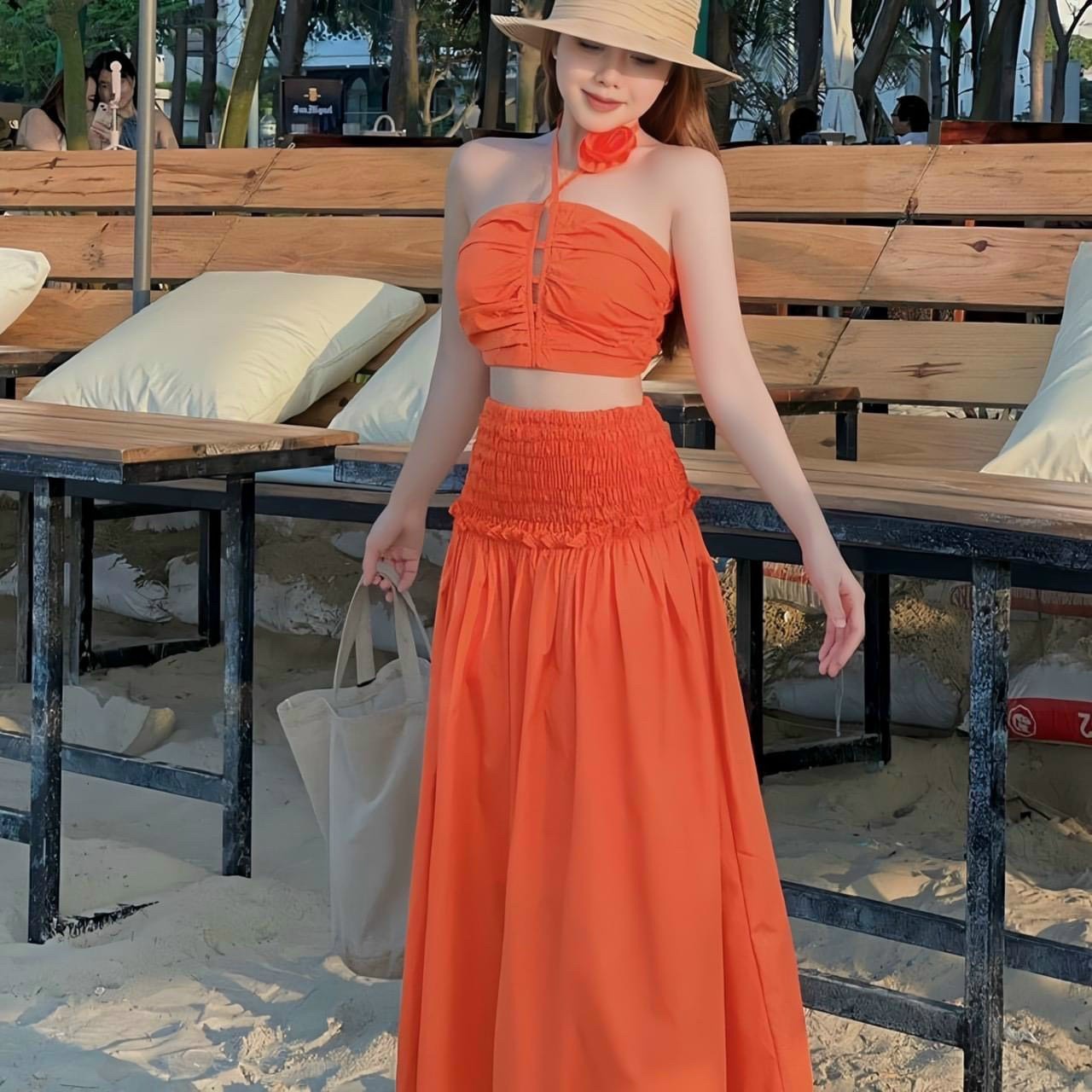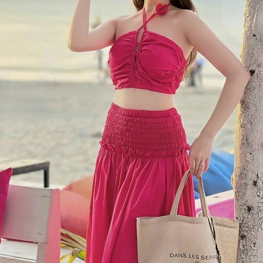 SET ĐẦM VÁY NỮ MẶC 2 KIỂU KÈM BÔNG CÓ MOCKING THÂN SAU (CÓ MÚT) DD09 – NANA FREESIZE < 55KG