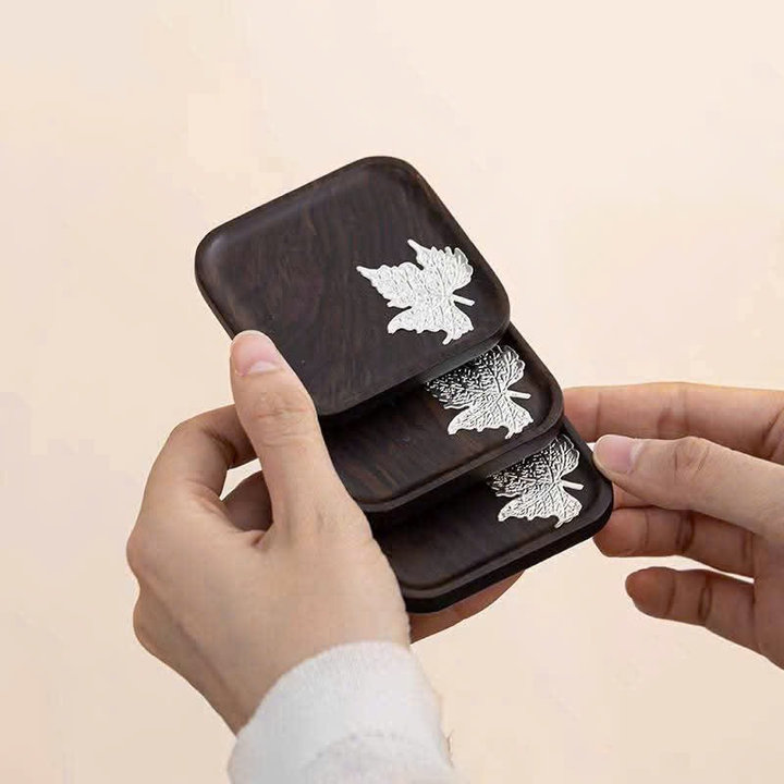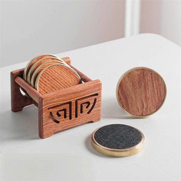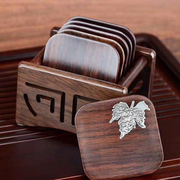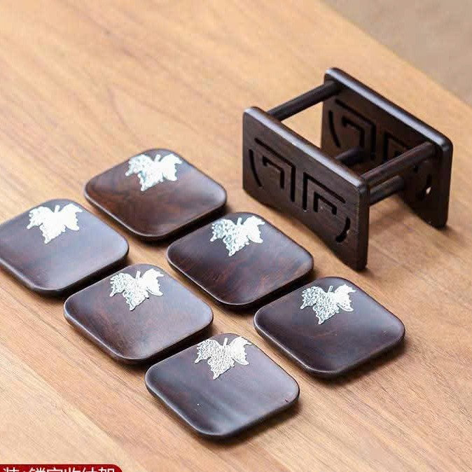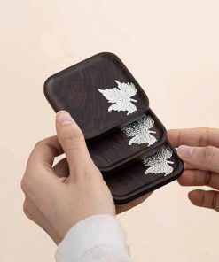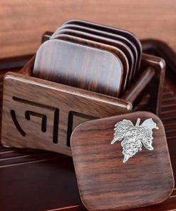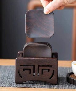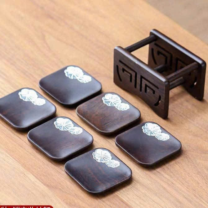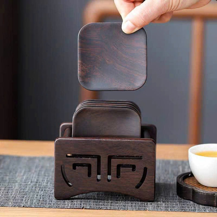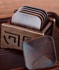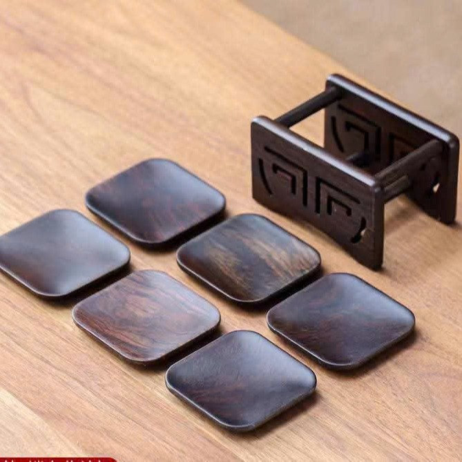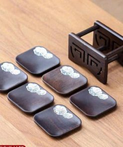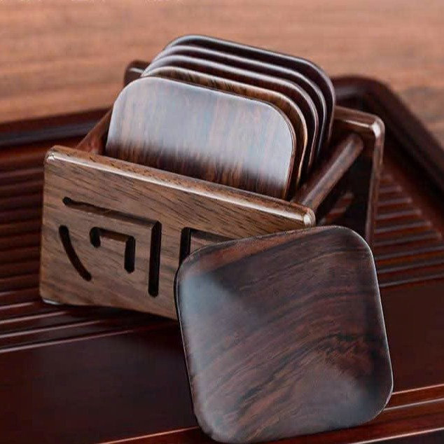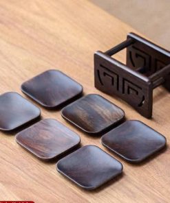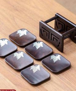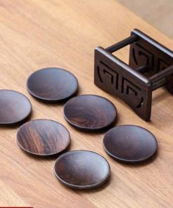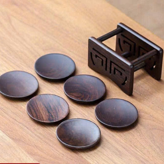 Bộ đế chén gỗ mun được chế tác thủ công tỉ mỉ, chất gỗ chắc, nặng tay – bền đẹp theo năm tháng.