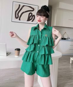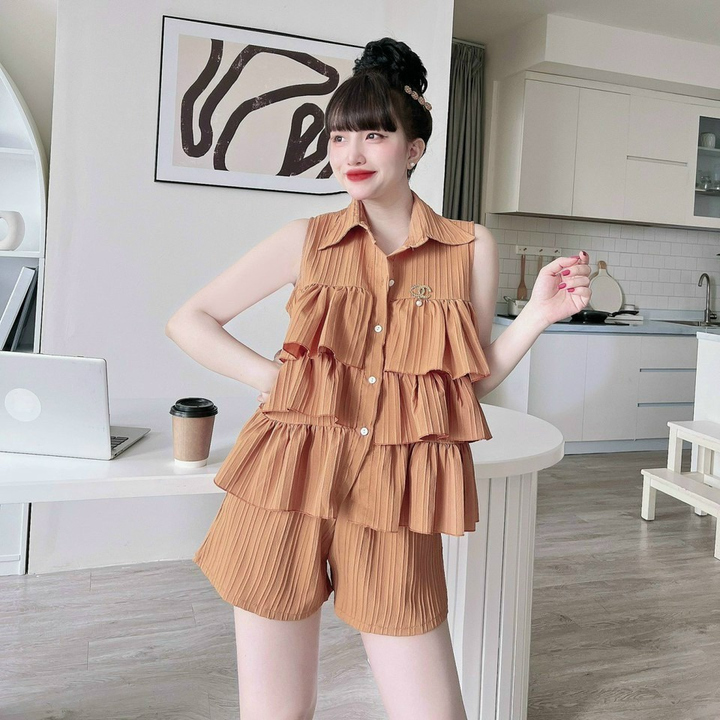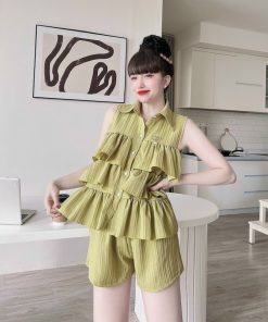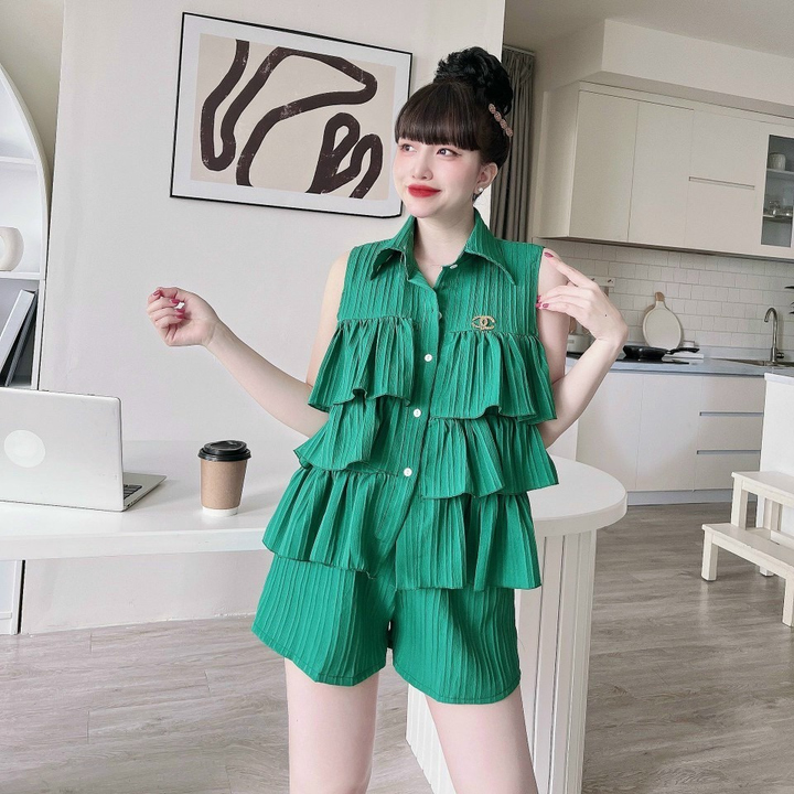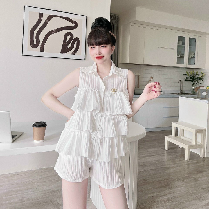 Tên sản phẩm: SET ĐỒ BỘ CHẤT ĐŨI ÁO CỔ SƠ MI SÁT NÁCH KÈM QUẦN SHORT M496