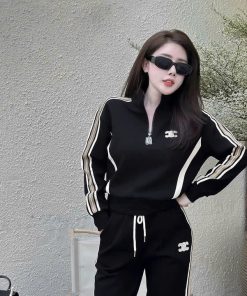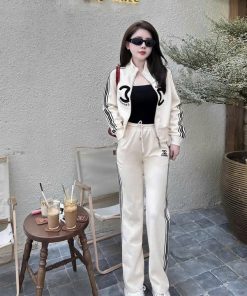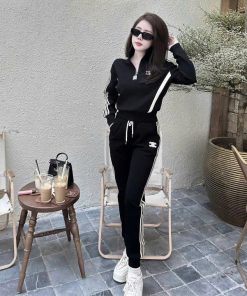Set Đồ Bộ Nỉ Nữ Tay Kẻ Sọc Họa Tiết Chữ X – Htm Fashion