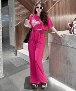 Tên sản phẩm: SET ĐỒ BỘ NỮ ÁO CROPTOP CỔ TRÒN TAY NGẮN KÈM QUẦN DÀI CHẤT THUN M793