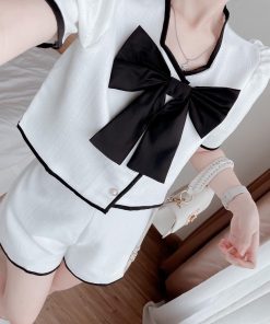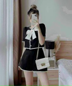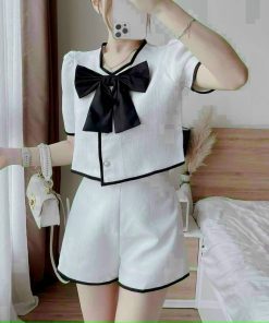 Set bộ đồ nữ áo croptop phối viền đính nơ đơn giản, siêu cute dành cho các tình yêu đi chơi, dự tiệc, dạo phố