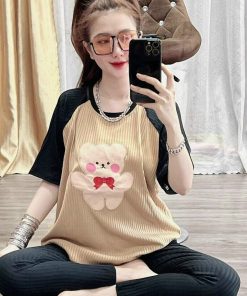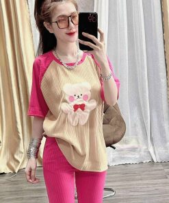 Tên sản phẩm: SET ĐỒ BỘ NỮ ÁO THUN CỔ TRÒN TAY NGẮN FORM RỘNG KÈM QUẦN DÀI CHẤT THUN M881