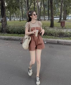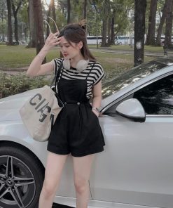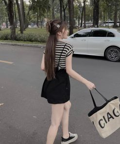 SET ĐỒ BỘ NỮ QUẦN YẾM MIX ÁO THUN GÂN SỌC BT779 – NANA FREESIZE < 53KG