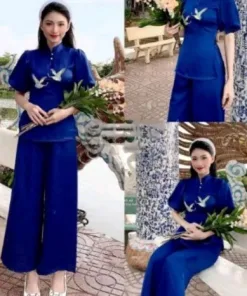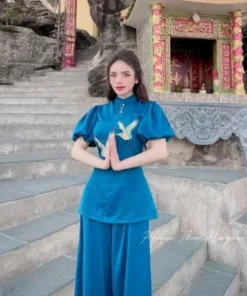 Bộ Đồ Lam Đi Lễ Chùa, Áo Dài Cách Tân Cao Cấp – SHOP MẸ BỐNG