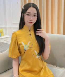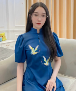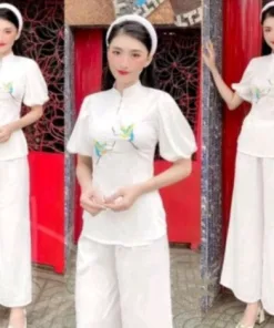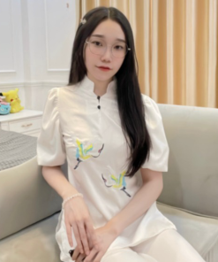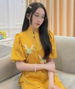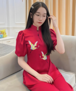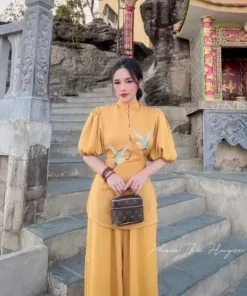 – Áo thiết kế cổ trụ tay phồng trang trọng kính đáo kèm họa tiết đôi hạt uyên ương cực đẹp