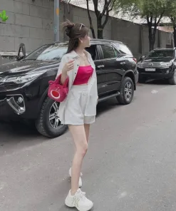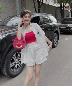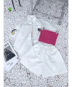 - Chất liệu: váy và áo sơ mi vải kate, áo bên trong thun borip
