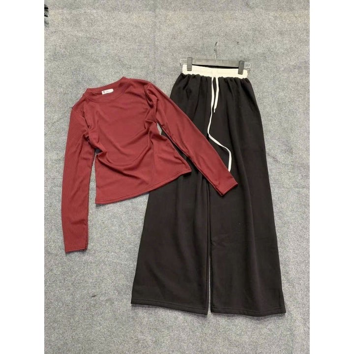 ✨ Set đồ nữ phong cách basic – tối giản gồm áo thun tay dài + quần suông ống rộng, mặc thoải mái, dễ phối, phù hợp nhiều hoàn cảnh.