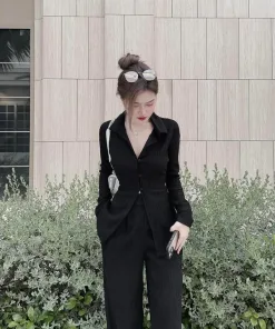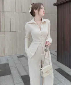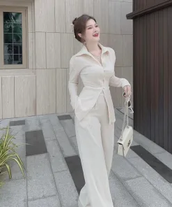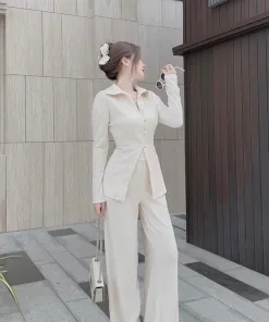 SET ĐỒ NỮ XỐP SƠ MI TAY DÀI QUẦN DÀI BT787 – NANA FREESIZE < 55KG