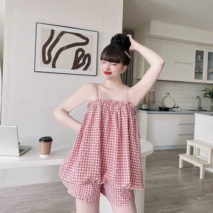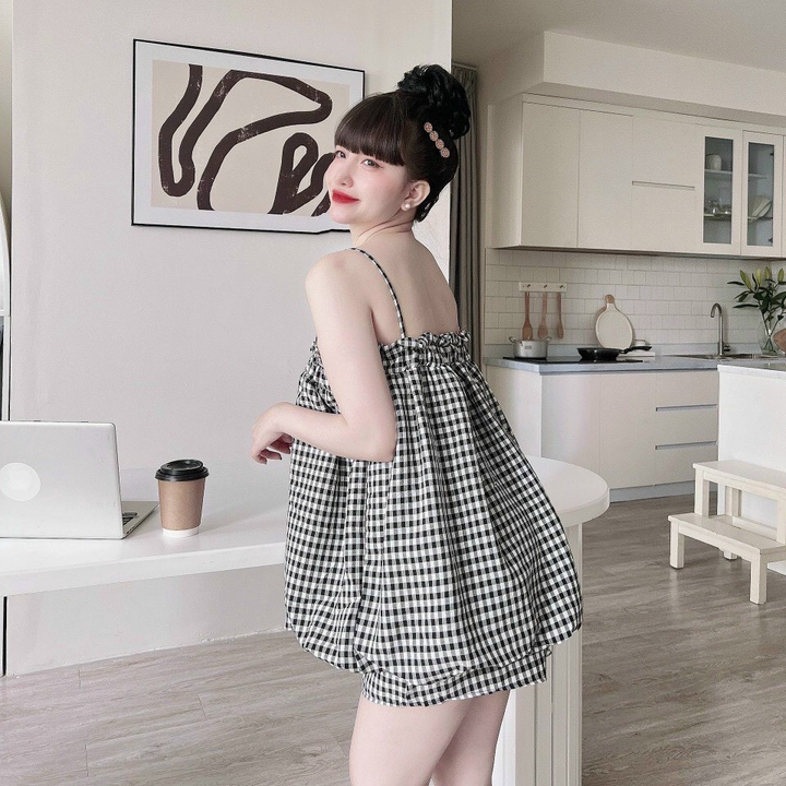 Tên sản phẩm:Set đùi caro dáng phồng cute đáng yêu V228 – HAKA MÂY