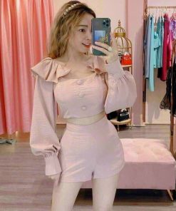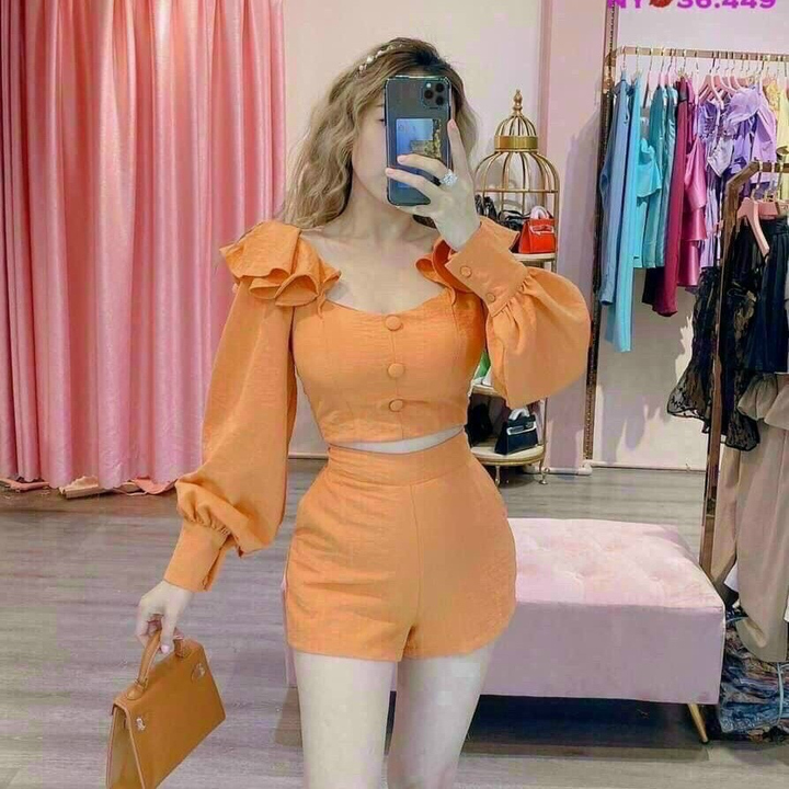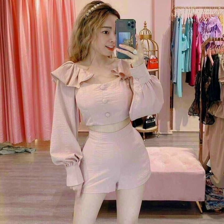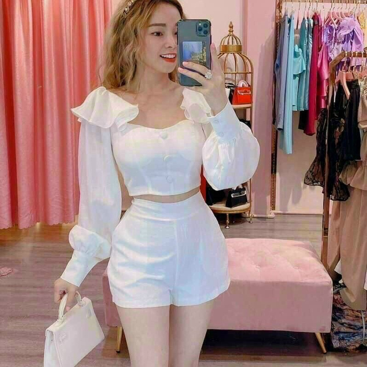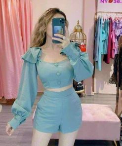 Tên sản phẩm: SET ĐÙI ĐÍNH NÚT BÈO VAI TAY DÀI V304 – HAKA MÂY