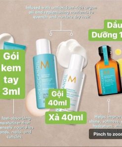 Gồm 4 món của hãng Moroccanoil – thương hiệu chăm sóc tóc nổi tiếng thế giới Siêu tiện lợi và dùng đương nhiên siêu thích, thơm, tóc mượt. Bao gồm: