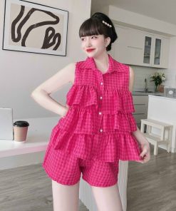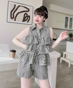 Tên sản phẩm: Set hai dây tầng hoa phối quần ngắn (dũi xốp) V227 – HAKA MÂY