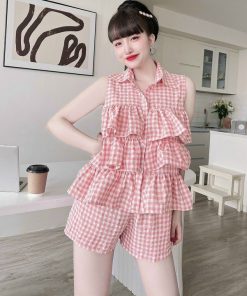 Tên sản phẩm: Set hai dây tầng hoa phối quần ngắn (dũi xốp) V227 – HAKA MÂY