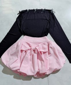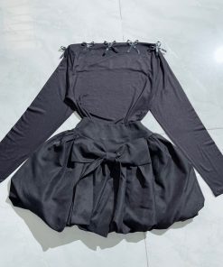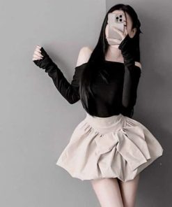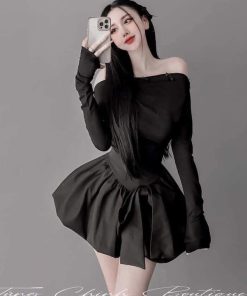 Chất liệu: áo thun gân tăm lạnh, chân váy kate có quần trong