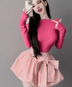 Chất liệu áo thun gân tăm lạnh mịn dày dặn đẹp, co giãn tốt ôm dáng cực xinh.