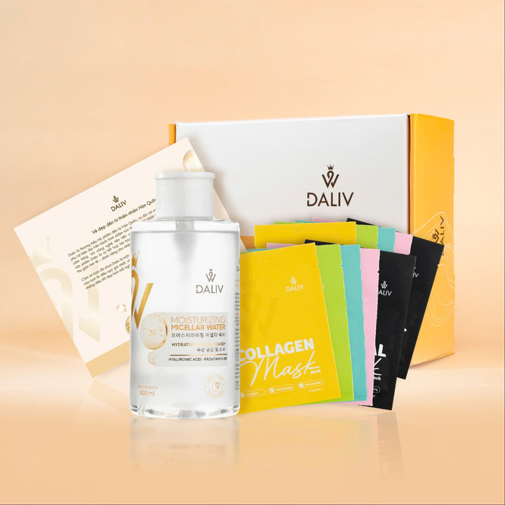 Bộ quà chăm sóc da cơ bản Daliv là khởi đầu của hành trình chăm da nhẹ nhàng, đúng và đủ. Sự kết hợp giữa nước tẩy trang Daliv dịu nhẹ và bộ mặt nạ Daliv giúp làm sạch sâu, cấp ẩm tức thì, mang lại làn da mềm mượt, tươi sáng. Sản phẩm là lựa chọn hoàn hảo cho món quà tinh tế trong mọi dịp.