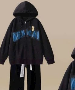 Sét Quần ống Rộng Dây To đen + Mix áo Khoác Nỉ Hoodie Mũ 2 Lớp Chữ Mexican