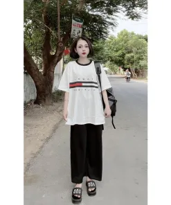SÉT QUẦN ỐNG RỘNG ĐEN CẠP CHUN + MIX KÈM ÁO PHÔNG SU TOMY FORM RỘNG FREE SIZE