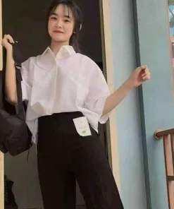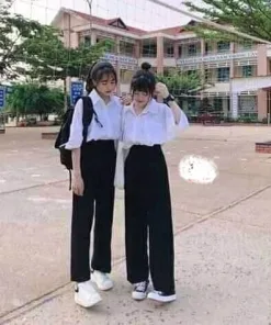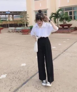-Tên Sản phẩm: Set sơ mi ngắn tay + quần ống rộng dài nữ học sinh