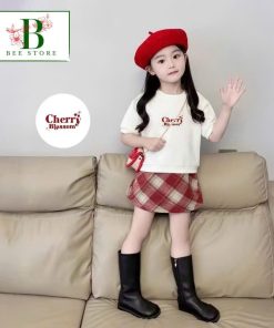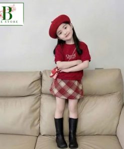 Set Váy Bé Gái Phối Nơ + Chân Váy Caro Dạ Chữ A Từ 8-45kg Dành Cho Bé Gái