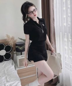 SET VÁY BORIP XẺ TÀ CÓ QUẦN CỔ TRỤ THÊU LOGO BT98PO-SAM FREESIZE < 52KG