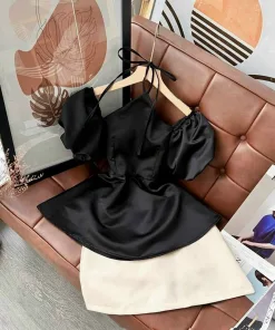Tên sản phẩm: SET VÁY CHỮ A CỔ YẾM TAY BỒNG THANH LỊCH V132 – CLOUDY DRESS