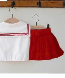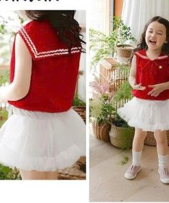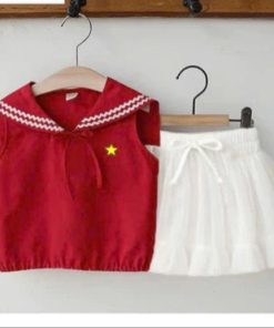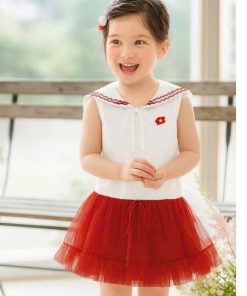 Set Váy Cờ Đỏ Sao Vàng – Áo Thủy Thủ Kate Cotton + Váy Lưới Từ 12-36kg Dành Cho Bé Gái