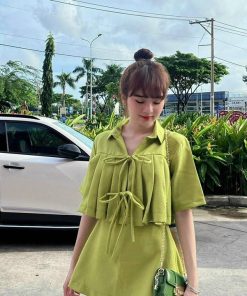 Tên sản phẩm: SET VÁY CỘT DÂY CÓ LÓT QUẦN TRONG DÁNG CHỮ A DỊU DÀNG V133