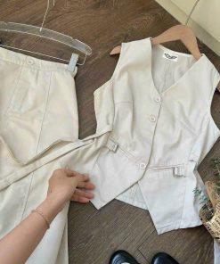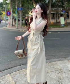 SET VÁY KAKI SÁT NÁCH CỔ TIM KÈM DÂY ĐAI BTH1105- NANA FREESIZE < 53KG
