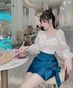 Tên sản phẩm: SET VÁY PHỐI NƠ TAY BỒNG SANG CHẢNH V313 – CLOUDY DRESS