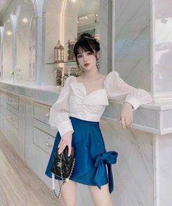 Tên sản phẩm: SET VÁY PHỐI NƠ TAY BỒNG SANG CHẢNH V313 – CLOUDY DRESS