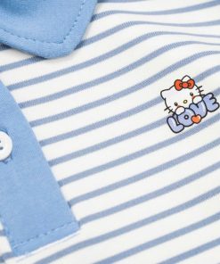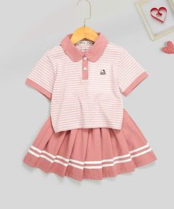 Set Váy Xếp Ly Bé Gái Áo Thun Sọc Cổ Bẻ Ngắn Tay Từ 12-45kg In Kitty Hottend Cho Bé Gái