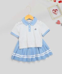 1. Tên sản phẩm : Set Váy Xếp Ly Bé Gái Áo Thun Sọc Cổ Bẻ Ngắn Tay Từ 12-45kg In Kitty Hottend Cho Bé Gái