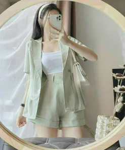 - Set đồ bao gồm quần đùi kèm áo vest và áo lót thun cotton.
