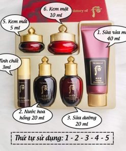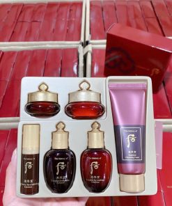 Set Whoo Mini đỏ 6 sản phẩm – Dòng dưỡng đông y bổ sung tân dịch cho làn da lão hóa. Đơn thuốc với tinh khí bổ suất đơn gồm quả lựu, thăng ma, khổ sâm, khoai mỡ và đơn thuốc hoàng cung gia vị tiêu diêu tán gồm mục đan bì, chi tử, xích thược dược giúp bổ sung tân dịch tận sâu bên trong làn da khô, đem lại độ ẩm mịn cho từng ngõ ngách trong da, giúp da săn chắc như thể đã tái tạo nên làn da thứ hai.