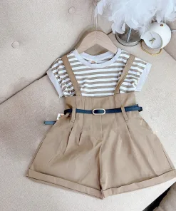 Tên sản phẩm: SET YẾM ÁO KẺ SỌC NGANG KÈM THẮT LƯNG SIÊU XINH CHO BÉ GÁI – BE YOURSELF