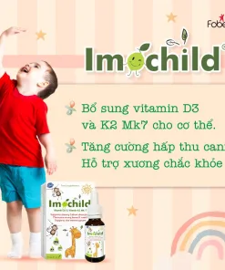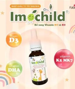 - Imochild Vitamin D3 K2 là thực phẩm bảo vệ sức khỏe được nhập khẩu chính hãng từ Tây Ban Nha, giúp bổ sung Vitamin D3 K2 mk7 và DHA cho bé, giúp bé phát triển chiều cao tối ưu, giúp xương răng chắc khỏe! Các nhà khoa học đã chứng minh hiệu quả bổ sung đồng thời vitamin D3 và K2 vượt bậc hơn hẳn so với uống đơn lẻ vitamin D3.