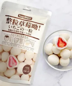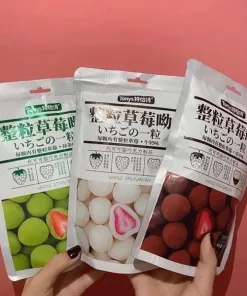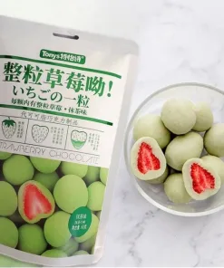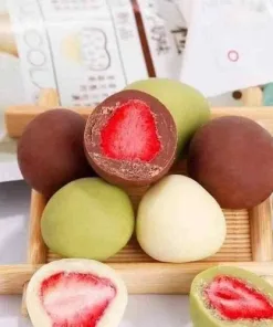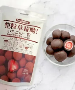 Những viên socola nhỏ xinh bọc những quả dâu tây sấy khô giòn. Kèm vị ngọt ngào của socola, vị chua dịu nhẹ của dâu tây là sự kết hợp tuyệt hảo, ăn hoài không thấy chán.