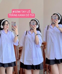 Tên sản phẩm: SƠMI HỌC SINH TAY LỠ CÓ TÚI HÀNG CAO CẤP – LÊ PHƯƠNG BOUTIQUE