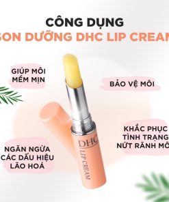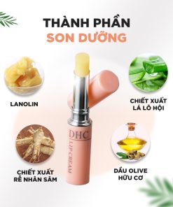 Son dưỡng DHC Lip Cream có nguồn gốc hoàn toàn từ thiên nhiên với dầu olive nguyên chất, lá lô hội, cam thảo, vitamin E đem lại tác dụng dưỡng ẩm tốt, giảm tình trạng thâm môi và chống lão hóa hiệu quả.