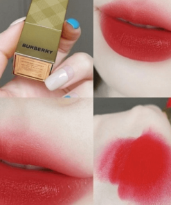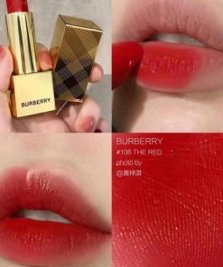 - Chất son của Burberry Kisses Matte màu 106 Matte The Red Mini Chất son BBR được hoàn thiện theo cấu tạo thoáng khí riêng biệt cho môi. Với độ dưỡng ẩm cao, chất son satin mịn màng giúp tăng độ bền màu sẽ mang đến cho bạn đôi môi mềm mại, quyến rũ.