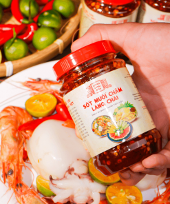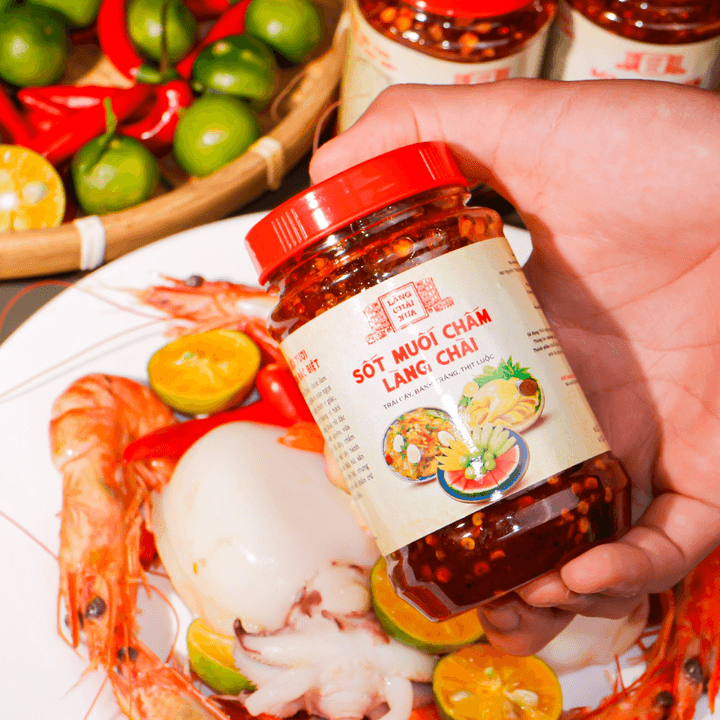 – Sốt muối chấm Làng Chài – được làm từ công thức hài hòa giữa vị mặn ngọt nhẹ nhàng, cay cay kích thích vị giác, làm nổi bật trọn vẹn hương vị tươi ngon của món ăn. Công thức rất đặc biệt, từng giọt sốt sánh quyện, vừa chua cay mặn ngọt đủ đầy, chấm được tất cả mọi thứ: trái cây, bánh tráng, thịt luộc, rau củ hấp, hải sản nướng. Một hũ nhỏ tiện lợi, nhưng chứa đựng cả bí quyết sốt chấm trứ danh của người miền biển.