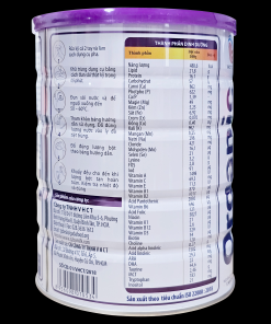 Bột sữa nguyên kem, lactose, whey protein cô đặc, maltodextrin, đường fucrose, protein sữa khoáng chất (natri citrat, calci carbonat, magnesi chlorid, kali glycerophosphat, sắt (II) sulphat, kẽm sulfat natri selenit, đồng sulfat, mangan sulfat, kali iodid), các vitamin (Acid ascorbic (Vitamin C), alpha Tocoph- erol (Vitamin E), Retinol (Vitamin A), Nicotinamid (Vitamin B3), D-Pantothenat, calci (Vitamin B5), Cholecal- ciferol (Vitamin D), Thiarmin Hydroclorid (Vitamin B1), Riboflavin (Vitamin B2), Pyridoxin Hydroclorid (Vitamin B6), Acid pteroymonoglutamic (Vitamin B9), Phytomenadion (Vitamin K), Cyanocobalamin (Vitamin B12), D-Biotin), cholin chloride, Acid Arachidonic (ARA), acid docosahexaenoic (DHA), Acid linoleic, Acid a-linolenic, Taurin, L-carnitin, Chất điều chỉnh độ acid: Calci hydroxyd, chất chống oxy hóa. Acid citric, chất tạo ngọt tổng hợp: Acesulfam kali, và hương vani tổng hợp. Thành phần có chứa sữa